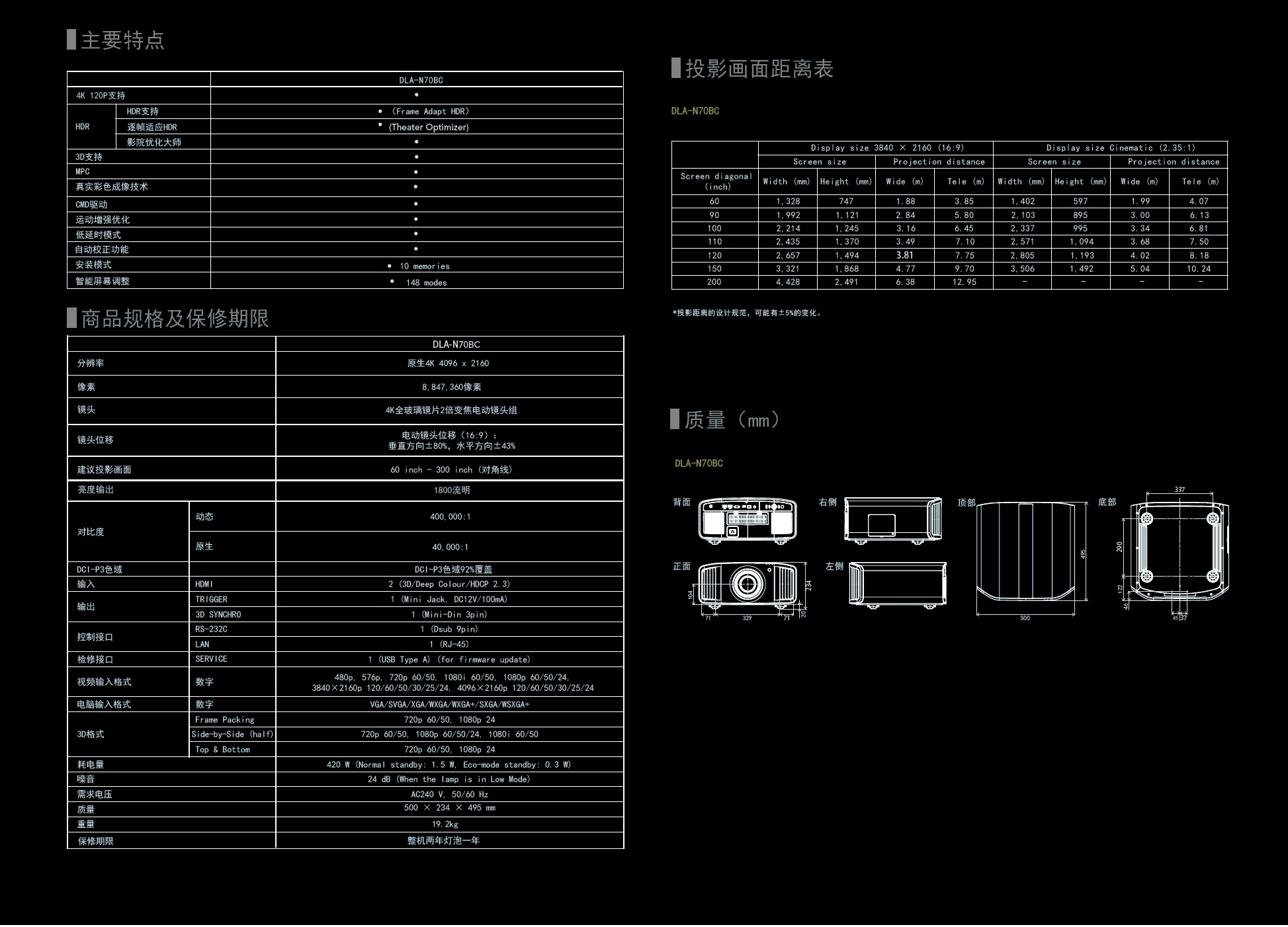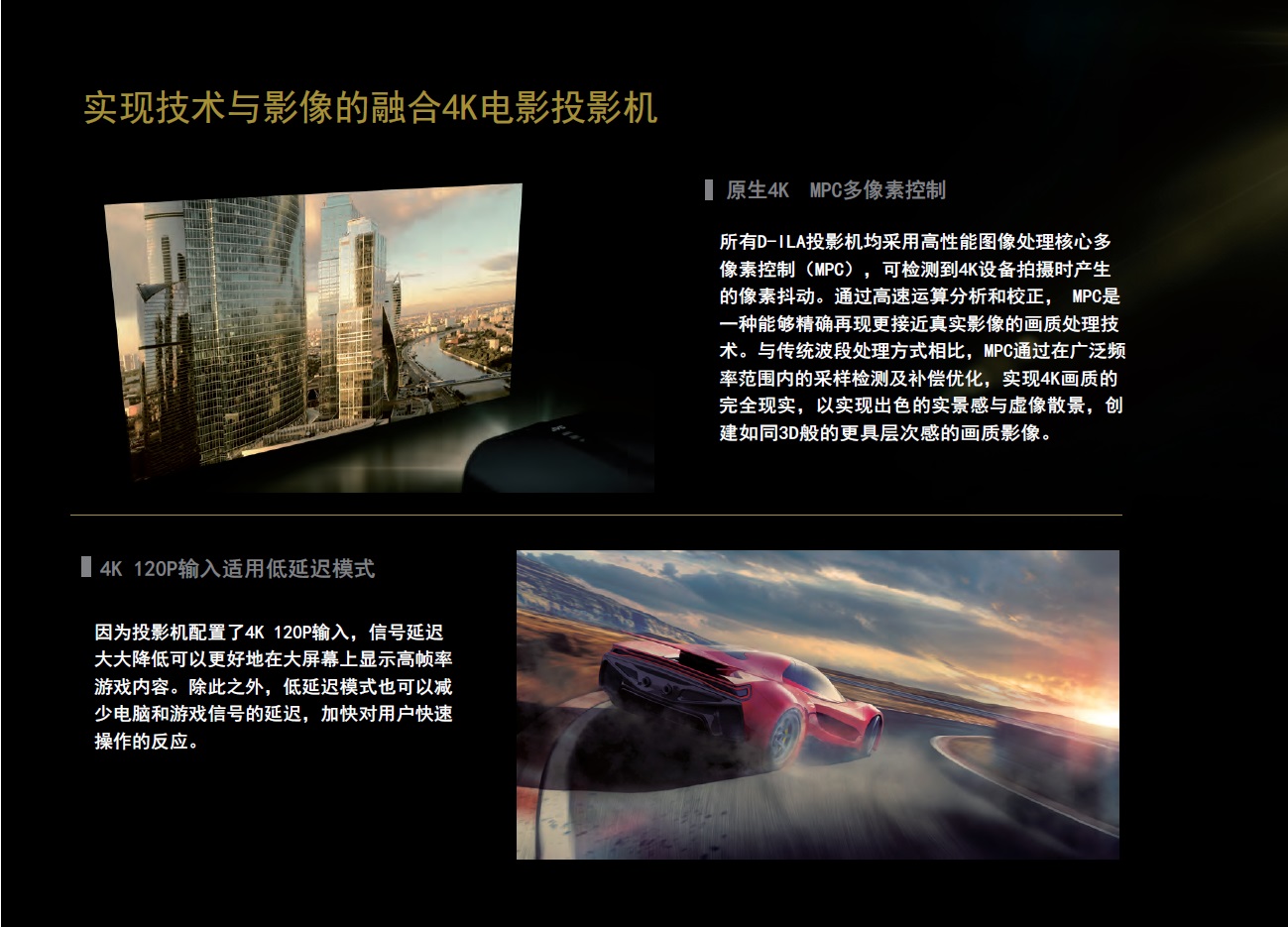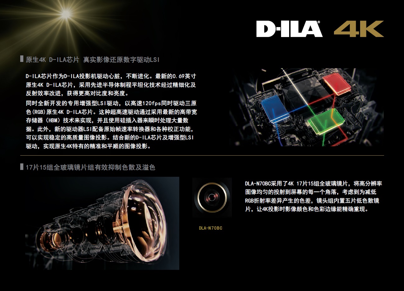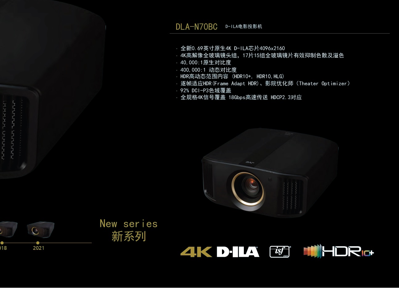 N70采用全新0.69英寸原生4K先进D-ILA芯片,分辨率达到4096*2160,画面更逼真更平顺,创造前所未有的原生超高清晰影像;