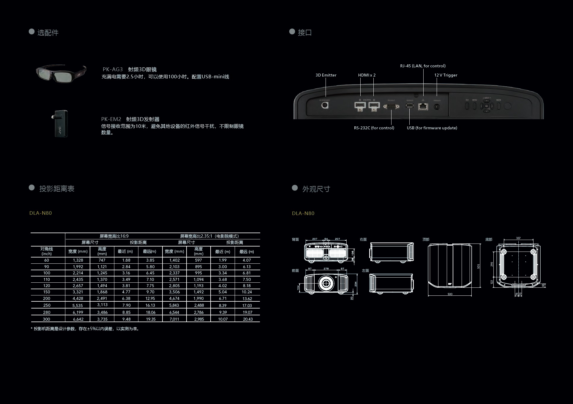 亮度:2200ANSI流明 激光光源2万小时使用寿命