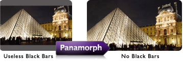 全屏电影Panamorph™ 镜头可以用最高分辨率和原始宽屏格式显示出宽高比 2.35:1 的视频(例如大型制片厂的电影),画面既不扭曲,也没有黑边。 |