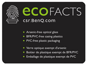ecoFACTS 标签ecoFACTS 告诉您 BenQ 的产品有多环保!BenQ 开发环保产品不是仅为了被动符合环保规定,而是一种积极主动的行为。 ecoFACTS 声明 BenQ 在替代危险物质、选材、包装设计、节能设计和产品其他方面所做的最大努力。 |