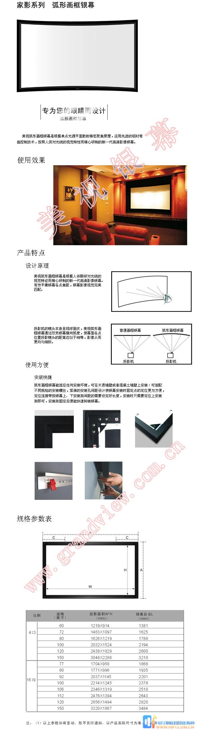 http://www.hifi.com.cn/ 来源:索兰影音 关键词:Grandview 弧形 画框