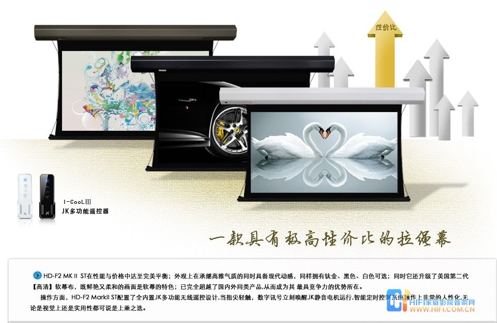 经科JK电动拉线高清软幕HD-F2 MKII ST(第二代美国高清软幕布+第二代铂铝合金外壳+JK国际静音电机+JK内置多功能遥控系统)参考价格如下:
