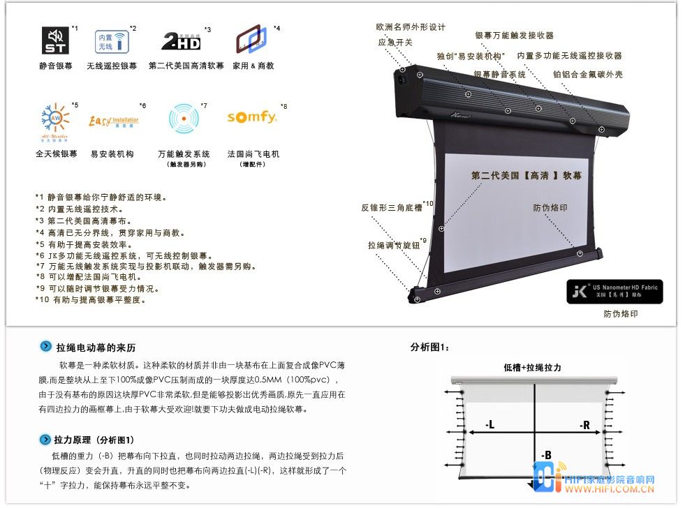 http://www.hifi.com.cn/ 来源:索兰影音 关键词:电动 拉线 高清 经科 JK