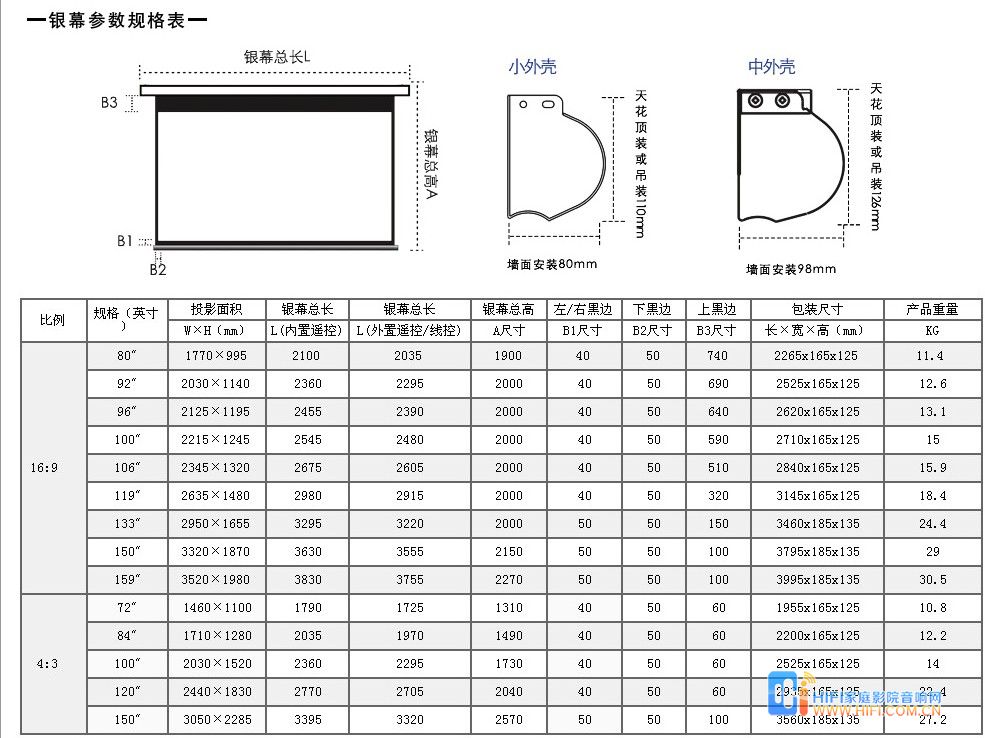 第二代国【高清】玻纤幕布+钢琴漆弧型彩钢外壳+同步电机
