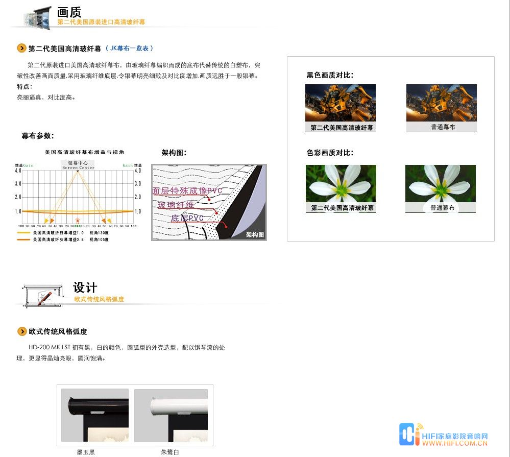 http://www.hifi.com.cn/ 来源:索兰影音 关键词:电动 高清 玻纤 HD-200