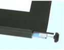 为配合视听环境,下端管变更为黑色.可欣赏到更加集中的画面.因幕布有一定重量,所以银幕的下端是无论如何都会出现皱的.因此配置了能够简单伸皱的张力微装置.只需前后回转就可以调整幕面平整性和幕面收缩变化(也有一部分不可拉伸的皱).
