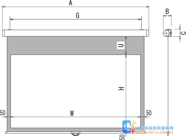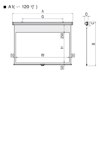 | ※A1产品对应各种幕布具有两种上黑尺寸,以上所例仅为WF201/202布料上黑参数。 ※各幕布上黑尺寸请参照下表 |