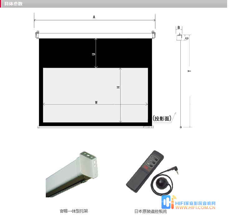 - 投影幕和外壳中心位置完全对称,安装时便于定位。