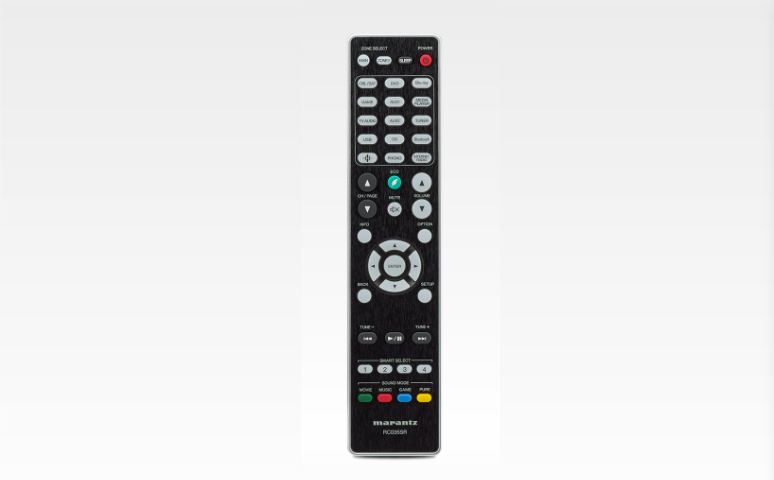 附带的遥控器上有4个智能选择功能按钮,可储存您对特定源的首选设置——包括输入、音量和Audyssey配置。按下按钮,接收机完美配置各种声源,从蓝光源到电视机顶盒,再到您喜爱的互联网电台等等。