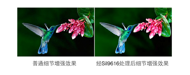 蚊式噪声是一种常见的压缩伪影的MPEG解码器造成的,而且常常出现在文本和计算机生成的图形边缘,SiI9616视频处理器能够检测并消除这种飞蚊噪声,让图像的表现更干净清晰。
