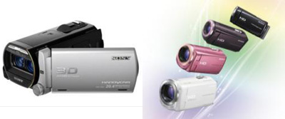 [图注:索尼Handycam高清摄像机HDR-PJ760E和投影分享图, 3D高清摄像机HDR-TD20E以及具有四款机身色的HDR-CX270E]