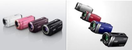 [图注:多种颜色的索尼Handycam高清摄像机HDR-CX270E及HDR-CX210E]