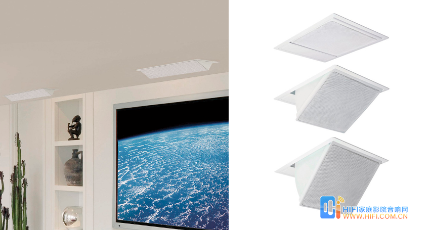 KEF 电动Ci扬声器系列可在非工作时与天花板齐平,使之成为家庭影院之首选,尤其可搭配电动屏幕构成全自动系统。