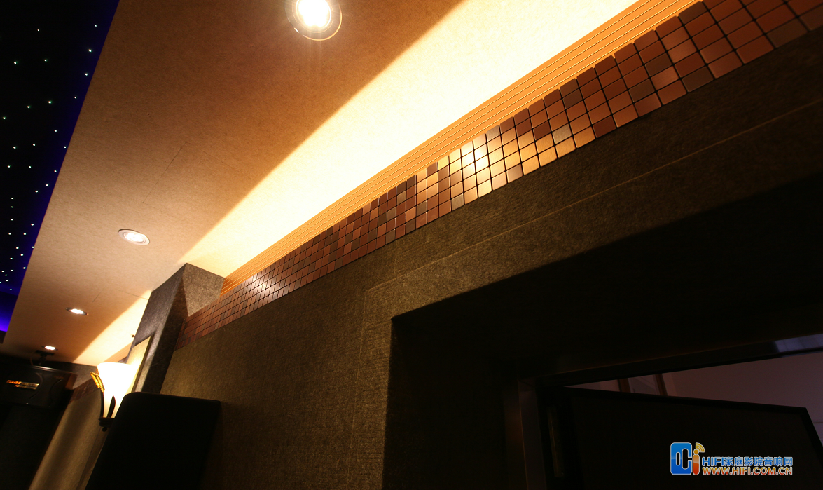 光影结合的 效果是房间设计的重点。既要营造一个卡拉OK的梦幻场景,关灯以后黑暗之中实现专业影院的效果。