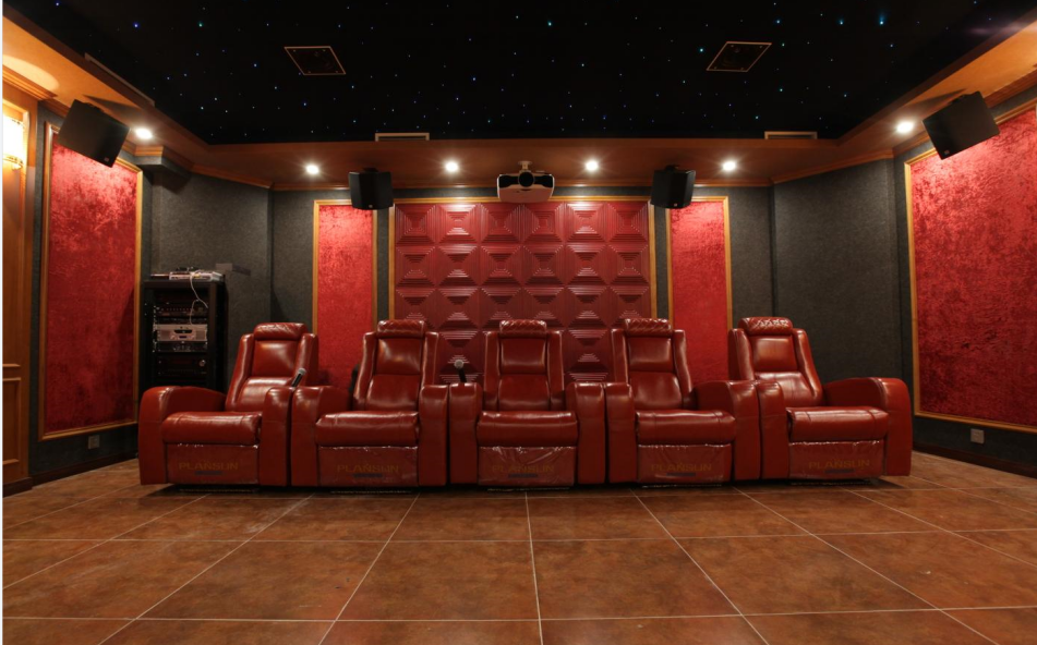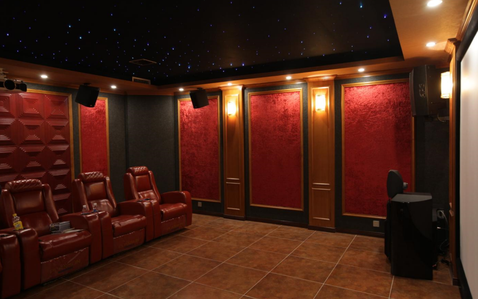 家庭影院是许多人家中的梦想,而一个完美的家庭影院需要经过细致的规划和装修,其中声学装修是其中不可或缺的一部分。 在位于京基鹭府别墅区的这间影音室中,声学处理是非常重要的一环。