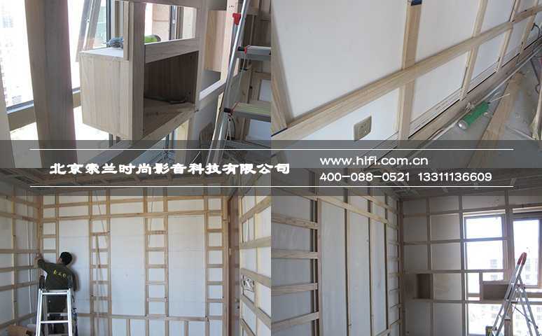 解决了家庭影院装修施工的难题,就要考虑如何保留室内的可用空间。小房间按照隐藏声学处理的结构设计,因空腔层厚度就会占用太多空间。而此房间从室内结构上看,平行墙面间可能产生震荡回声,改变墙面平整度是处理此类缺陷的有效方法。