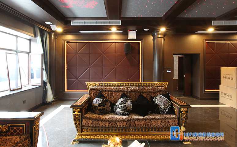 经过前期与客户的沟通,及与设备提供方的对接,整体设计方案以沉稳大气为主,兼顾影院与KTV声场特性,声学处理采用隐藏式风格,除常规的建声设计,此次融入了大量沉稳庄重的欧式立柱和线条元素。