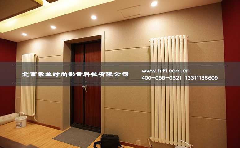 视听室两侧墙要保持绝对的对称,故此我们把侧墙原有的门封堵,在后墙开设了入室门,装配的是专业定制的声盾子母隔音门。