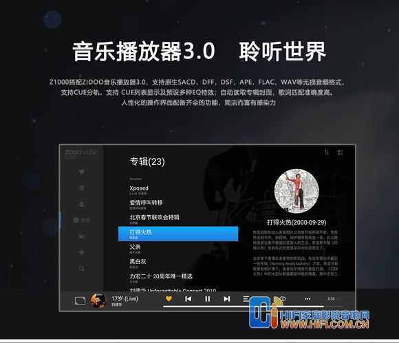 原生支持 SACD,DFF,DSF ,APE,FLAC,WAV 等无损音频格式,支持CUE 分轨; 支持手机控制无需打开显示设备聆听音乐。