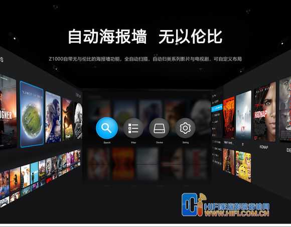 无与伦比的海报墙功能,全自动扫描,自动归类系列影片与电视剧,可自定义布局。