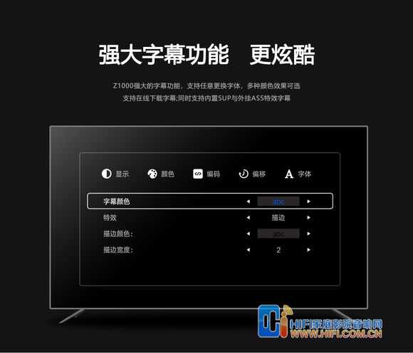 强大的字幕功能,支持任意更换字体,多种颜色效果可选,支持在线下载字幕 ; 同时支持SUP 和ASS 特效字幕。