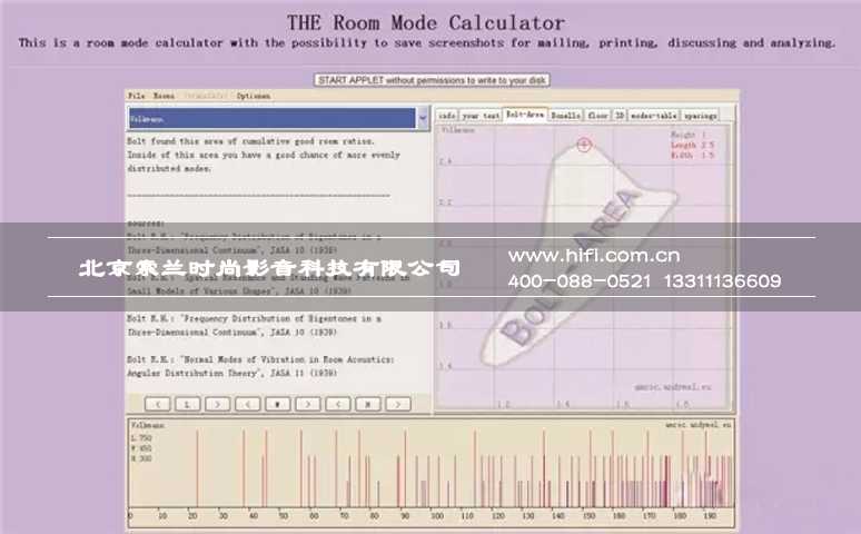 在网络上其实也有相应的关于房间比例和大小的模拟声学计算工具,例如私人家庭影院设计师经常使用的amroc.andymel.eu。我们也曾在多年前对大部分主要的国内外机构推荐的小房间空间比例值用这个工具进行了大量的模拟计算,有兴趣的朋友可以找相关的资料查阅。