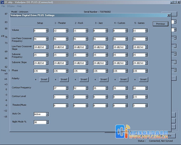 DD-15+可以使用Place & Play,那就是完全不设定,只用DD-15+内建好的EQ模式聆听,连麦克风都不必拿出来。难度高一点的是Self-EQ,但必须用到麦克风与PC计算机,如果家里没有计算机,则可透过DD-15+背后的S-Video端子外接至显示器即可操作。用电脑进行设定可以让过程更便利,但Velodyne的设定软件只有PC版本,而且仅支援XP与Windows 7,Mac计算机不能使用。开始设定前请先将软件安装于计算机,并将DD-15+、计算机、麦克风都连接好,并将麦克风放置于主要聆听位置。