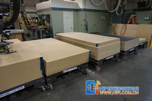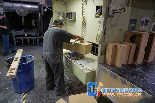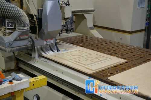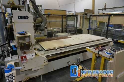 进入车间,首先看到那些排列整齐的原料——MDF中密度纤维板。绝大多数音箱,都由MDF板材来制作箱体的。在它们的旁边,排列着4台CNC数控机床。如果你有制造业的工作经历,对那玩意肯定不陌生。数控机床的优点有明显,它能够将制造流程自动化。每个设计定型后的Triad音箱(包括有特殊规格定制的),数据都会预存在数控机床中。当MDF板置入机床里,生产线就此启动。数控机床的精度高达1/1000英寸,可以确保同一批次音箱都一模一样。
