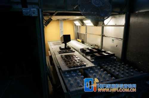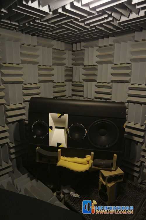 并不是每一个音箱制造厂愿意向人们开放它的视听室,更不要说是消声室。从这个角度来说,我还是幸运的。至少,我有幸参观了Triad的视听室。那里有多款放大器和测试设备,供试听使用。他们会播放劲爆的音乐,确认音箱的性能是否符合原先的预期。处于研发中的新款产品,也会在这里进行主观试听。对于音响发烧友们来说,这间屋子值得期待。我更不会错过参观Triad消声室的机会。虽然消声室对音箱制造厂来说,至关重要,不过由于前期的投入巨大,并非所有厂家都愿意去建造专用的消声室。凑巧,有一款Cinema Reference的音箱在这里进行音效测试。这里同样使用到Linearx System的LMS电声测试系统,而且有个可远程控制的麦克风,用以对音箱进行360度的响应测试。