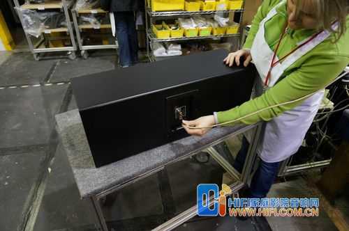 有意思的是,我还有机会“偷窥”了设计师的电脑,那上面有新款Cinema Reference音箱的3D模型,可以看见整个的物理架构(他们没有允许我拍照)。这些数据能直接输出给数控机床中,并将它制作出来。设计师负责建构设计模型,并确定何时生产组装,以及讨论如何进行内部布线等。如果有修改,也能很快再次制作出样品。设计师对这些问题都会有清醒的认识,他们知道怎样设计来便于组装以及降低手工工序,降低劳动成本。