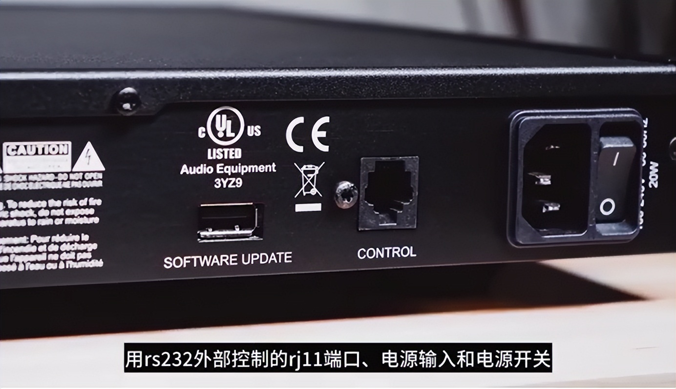 前面板是极简主义的设计,会让人想起TDAI-1120。从玻璃面板的部分,可以清晰地看到CD信息和其他的菜单选项。播放按钮位于正中间,紧接着就是光驱托盘。最后的是弹出和待机按钮。它包含了rca和XLR模拟输出、光纤输出、数字同轴输出,软件更新可以用USB端口,用rs232外部控制的rj11端口、电源输入和电源开关。