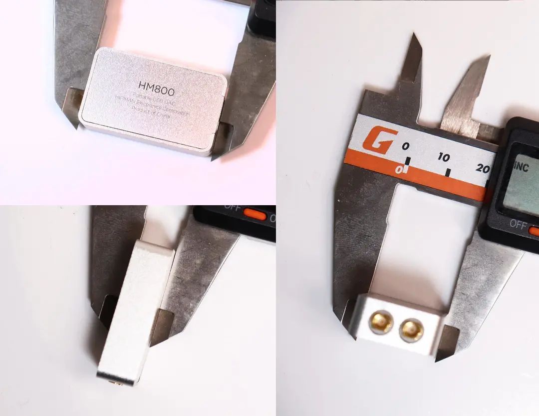 既然看到主体了,官方宣传它是最轻巧的解码耳放设备,那么具体有多小呢?下面我做了一个实际测量可以看到长为33.43mm,宽为19.49mm,厚度为8.95mm,这样的体积基本上就是一个橡皮擦的体积,你可以将它放到自己的裤兜里或者小包里,外出随时携带非常方便。