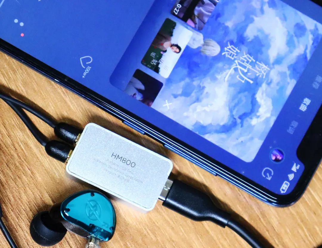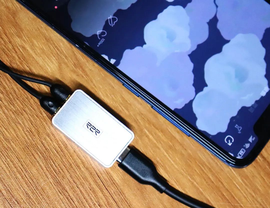 另外一边只需要连接手机就可以直接听歌了,这里值得一说的是由于采用的是专项供电,这款解码耳放是没有自带电源的,需要利用手机的接口线来供电,另外由于采用的是HYMALAYA R2R DAC芯片拥有更低的功耗,完全不用担心电量问题。
