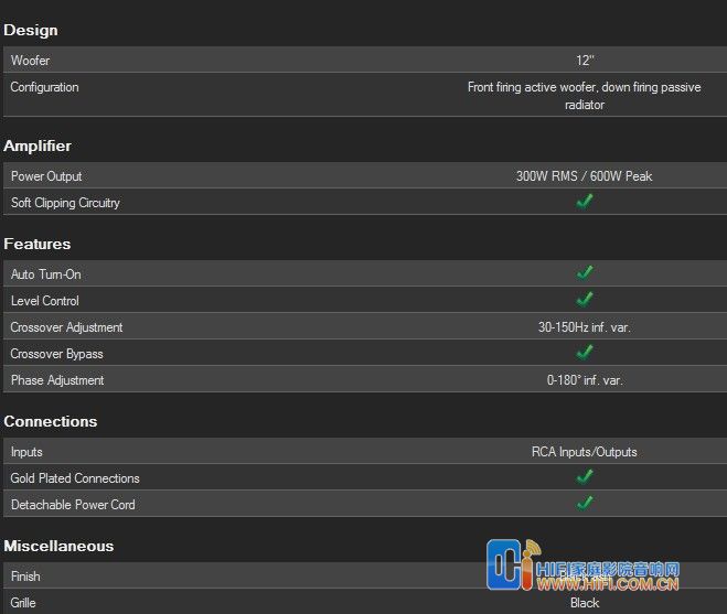 骄阳 Sunfire SDS-12 最大功率600瓦的双12低音炮