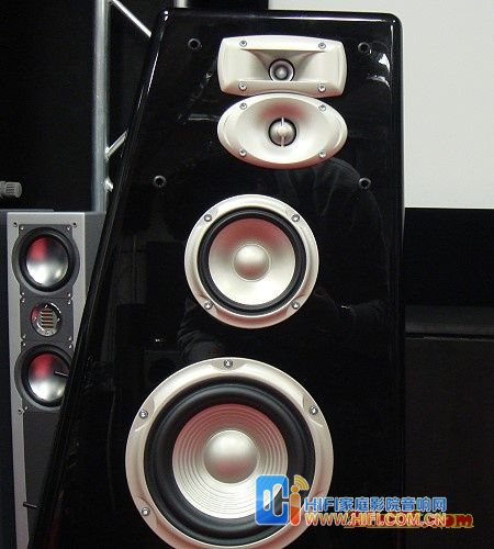 TL260的超高频部分由一只19mm Mylar聚酯材料振膜的超高音单元担当,并负责20kHz~40kHz频段的超高频重放。这只超高音单元为JBL公司全新研发,并装载了(UHF)超高音驱动器组模以及配合用上特别的扩散号角,将扩散范围控制在60度×30度的有效范围内。这只超高音单元的高频响应可轻松延伸至40kHz,同时具有充足的能量感,能够完美再现出纤细、精确、开阔的超高频信息。TL260的高音单元是一只25mm纯钛球顶振膜单元,它负责4.5kHz~20kHz频段的高频重放;这只高音单元也配合设计有一个椭圆状号角,系JBL的独门(EOS)波导管技术;该技术起始最早是用于开发JBL专业级LSR录音室监听音箱,现在移植到了TL260身上,它可将高音的指向性控制在60度×100度的范围内,这样一来即使是在离轴响应的情况下,仍然可以获得与轴向响应相同的频响特性,可产生更为精准的声音结像和定位,同时还将获得大动态下的声音平衡性以及瞬态响应的提升。由于高音和超高音单元全部以钕磁铁为磁路,所以极易取得高灵敏度、高输出与耐用性的特点,完全轻松对应SACD和DVD-Audio等新代信源的宽频响应要求。TL260之所以把超高音与高音进行分立,除了可以配合精密的分音器外,还能使播放出来的声音更加纯正自然、柔美精确,频率特性也更佳。近距观察这两只单元,可以发现它们不仅聚靠得很近,而且单元的开口外角均作了圆弧处理,目的是获取点源声像和更加纯净的声音,由于它们的开口号角都是Sono Class一体式注模成型,不仅使得号角的内径、角度的精度非常高,一致性更好,而且整个号角系统具有更充分的强度和良好的声学条件,从而取得清晰的声音。