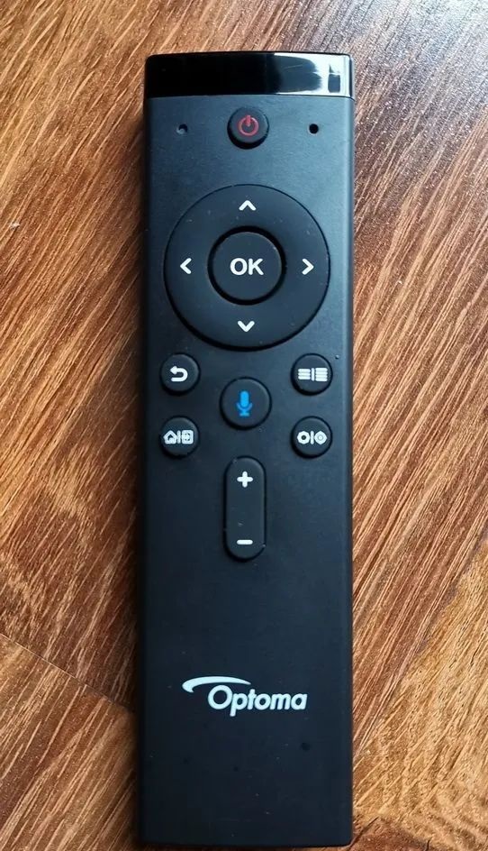 这716搭载的遥控器设计相当失败,手感差且无背光,关键是按键就设计了可怜的几个键位,其中3个按键居然设计成复用键,长按和短按出来的功能不同,奥图码这成本控制真是做到极致了!刚开始我就死活没找到系统菜单从哪里进入,而最不常用的音量键(控制机身的小喇叭)却直接浪费了2个键位,真是无语,这设计师的头估计被牛踩了!