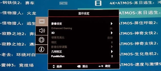 这个就是HDMI2口的界面,可以看到最下方的那个PureMotion(动态插帧)是灰色的,不可选!