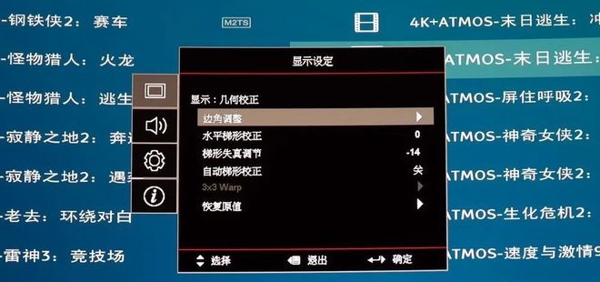 显示设置菜单,需要提醒下,如果这里使用了几何校正功能的话,那么其他选项会变成不可选,即为灰色。