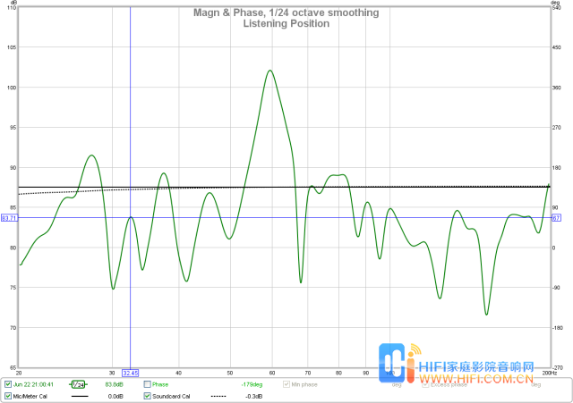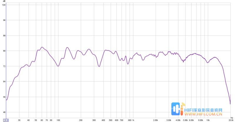 4)最后,让我们来看一看,在一间普通的小房间里面,也就是你坐的位置,测得的频率响应曲线。