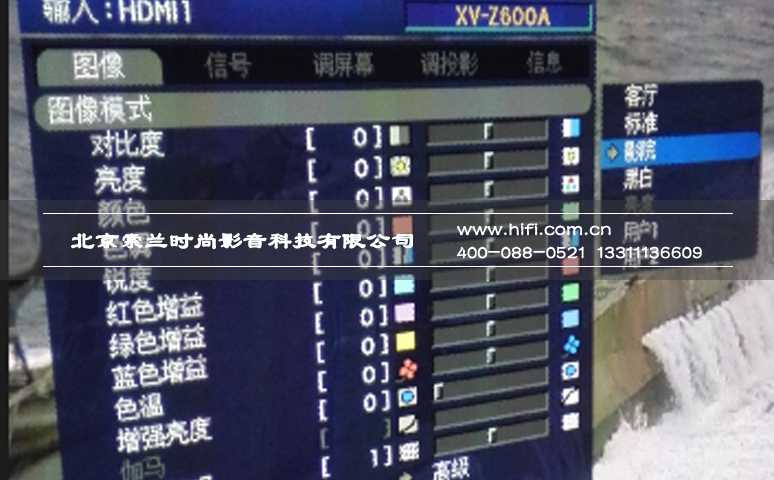 如果说XV-Z600A的外形让我对这款机器的画质有一点点担忧的话,那么他开机后展现在我面前的丰富调节菜单则完全打消了我的担忧,夏普长期浸淫在中高端家庭影院投影机市场的技术实力在菜单中就得到初步体现。XV-Z600A提供了非常丰富的调节菜单,首先就是它预设了客厅、标准、影院、黑白、用户1、用户2等几个模式。这几个模式如何选择一目了然,比如如果周围环境光较强,选择“客厅”模式,XV-Z600A具备的3000流明亮度会让明亮环境也能清晰显示画面。当然,多数情况下,我的建议是选择“影院”模式,这一模式能带来更高的对比度表现。