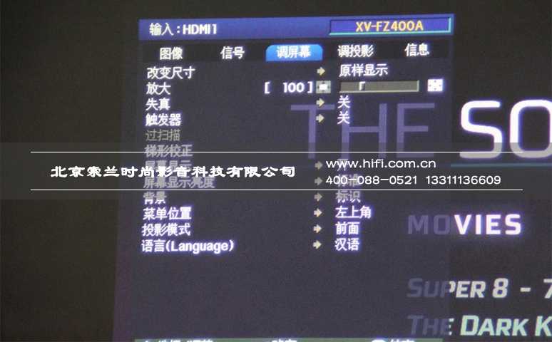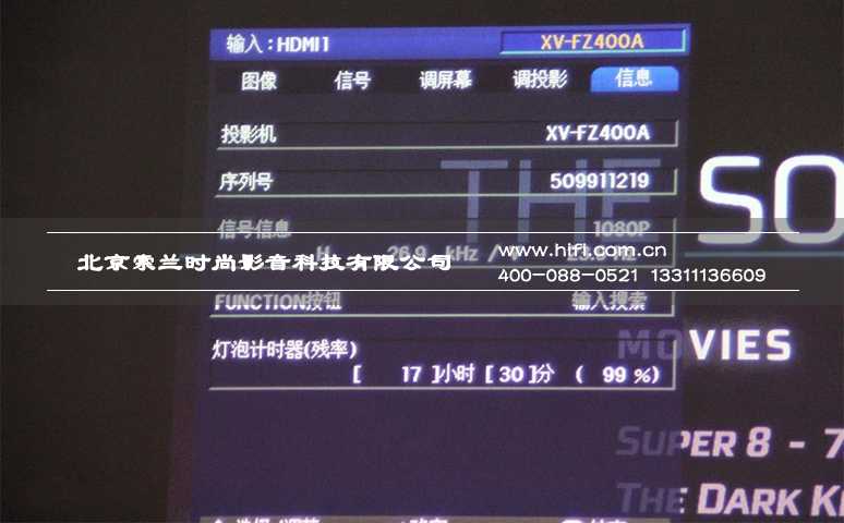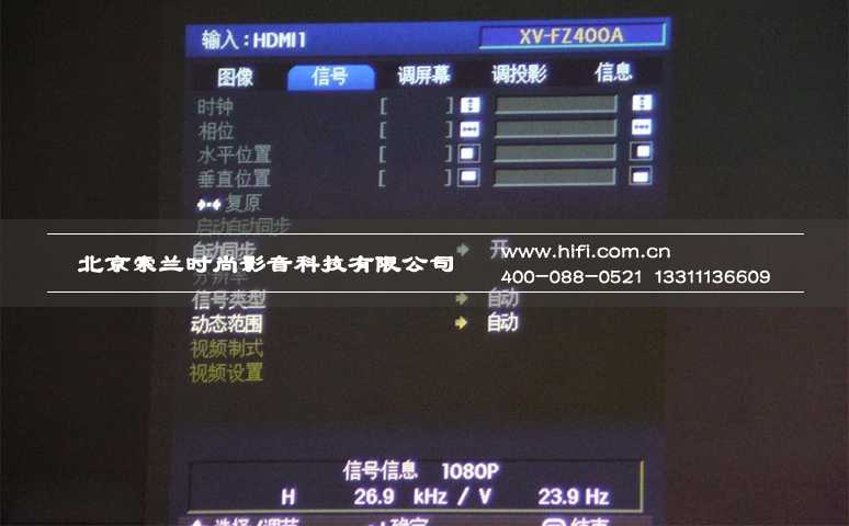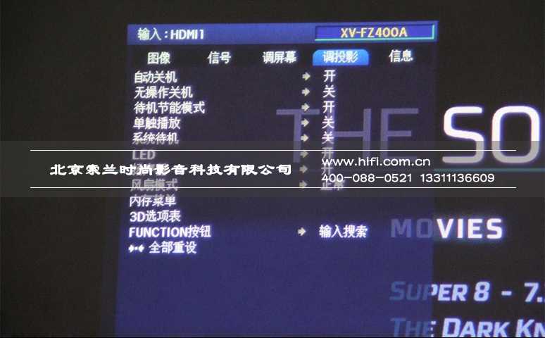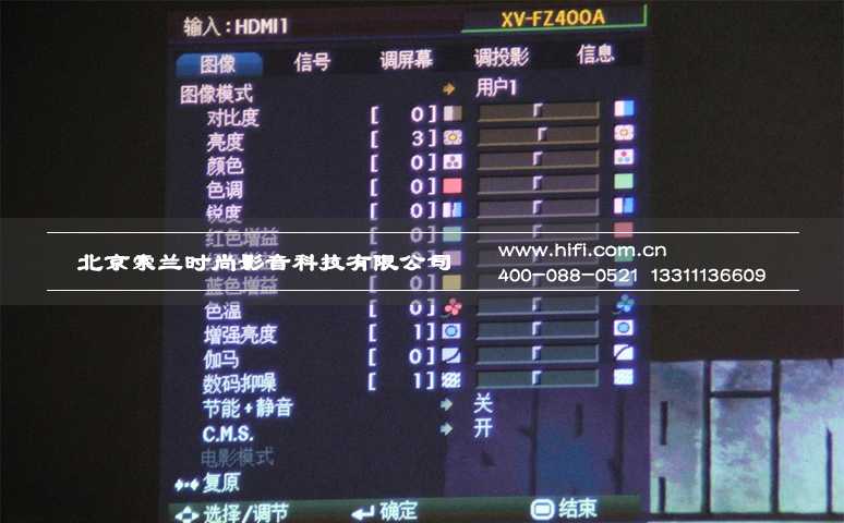 FZ400A功能菜单分为图像、信号、调屏幕、调投影和信息五大板块。全中文显示,调节很方便。