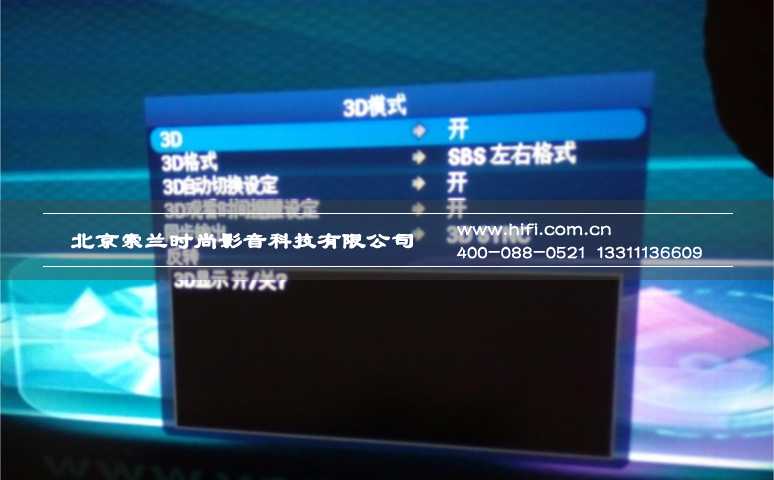 3D功能菜单,可以根据需要设置,如3D格式可以设定为自动,3D自动切换设定在“开”状态。在播放3D影片时,投影机会自动转换,非常方便。