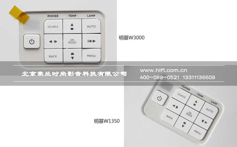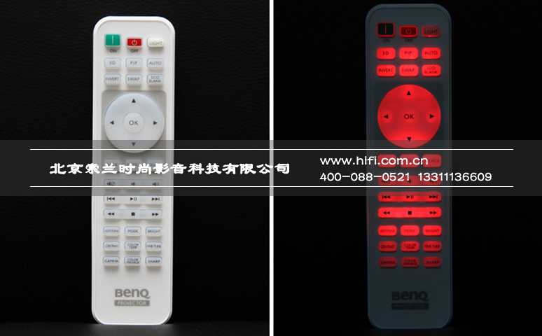 明基W3000的遥控器与W1350一样,控制键布局更加合理,主要功能键色彩区分,更易快速找到。而且红色背景提示灯,更是为在黑暗中使用带来了便利性。另外一个人性化设计,就是High键,它采用银光设计,黑暗的情况下,能够让你轻松找到遥控器所在位置。