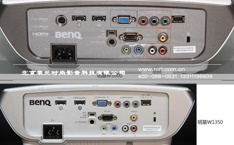 变化四:接口。明基W3000接口配置也是相当丰富,比W1350多了一个3D SYNC OUT接口,用来外接3D转换器。其余就是在尾部还增加了一些该机所支持的功能标识。