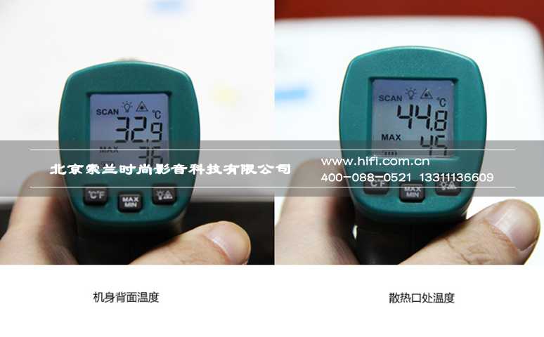 在测试温度环境中,测试的室内温度在21度左右。明基“色准大师”家用投影机W3000从实际体验测试来看,在使用近两个小时左右的W3000,机身最高值为32度左右,温度还算是正常,属于正常范围值。而在散热口出,测得温度则为44度,通过手感触温度,在风口处有点烫,但机身温度还是保持不错,长时间观看也无碍。