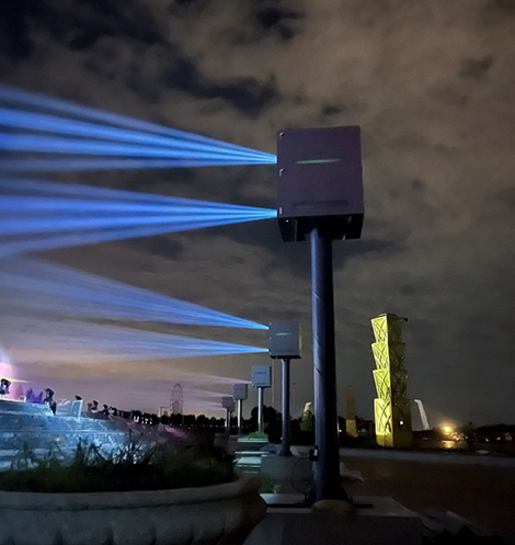 M-Vision Laser 21000-WU具有的边缘融合、几何校正以及内置堆叠点等功能,方便了方案的设计与调试,工程安装使用便利。 密闭光引擎达到IP60防尘等级,无滤网液冷+风冷设计,使用稳定维护成本低,满足了喷泉广场这种室外大型文娱项目对设备稳定性、耐用性的高要求。