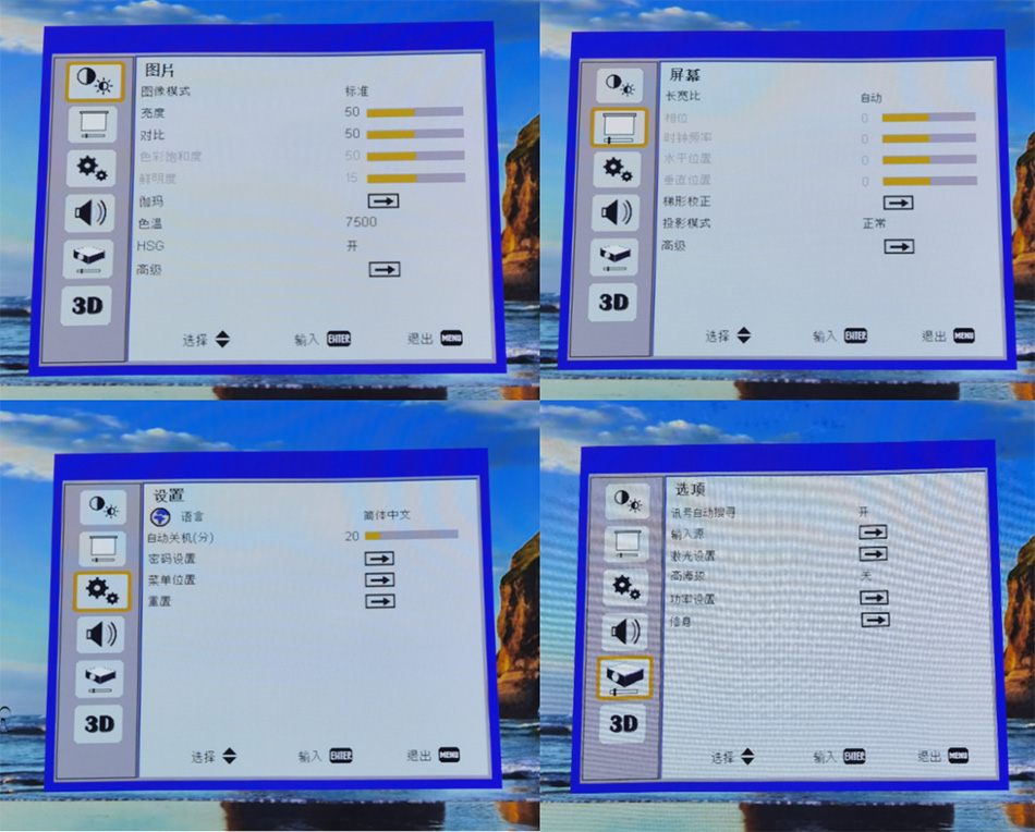 设置页面中,我们可以对索诺克LS38DH的色彩、梯形校正、长宽比、投影方式等显示设置进行详细的调整,而索诺克LS38DH最让人舒心的就是在设置页面确实能感受到它为各个场景的需求都做了考虑:色温、伽马值等细致的调校为对画质要求高的娱乐行业赋能;开机密码设置为企业、政府等涉密性会议提供帮助;手动调节激光功率体现绿色节能、降低成本;支持3D影像符合观影、游戏等使用需求……不愧商教娱“三栖”之名。