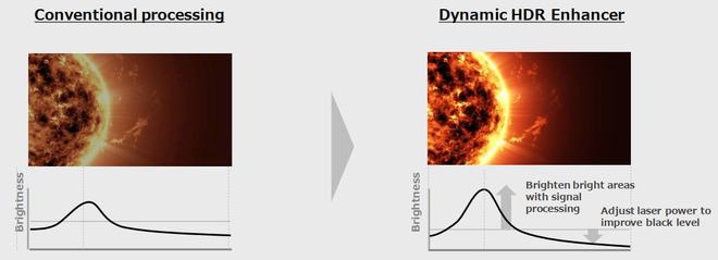 适用于投影机的升级版X1图像处理器具有强大的处理能力,与两款机型上新型激光输出控制组合使用后,对比度进一步得到增强,使HDR明亮的场景更明亮,黑色场景更黑。新推出的动态逐项重塑技术可实现更强大的实时图像处理,对每一帧的对象进行分析,并对众多内容中不匹配的HDR图像进行调整。