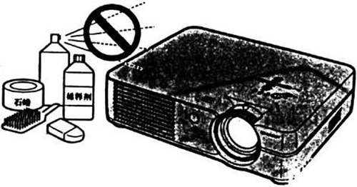 2)、一般投影机都是塑料材质,不能使用苯,稀释剂,发性溶剂,杀虫剂,消毒剂等,因为这些会损坏投影机的表面涂层。