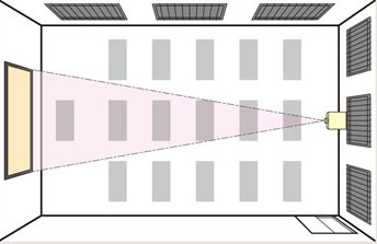 室内灯光的影响给投影画面造成的有害影响不仅仅是外部的光线,最理想的室内设置环境需要尽量的避免灯光或照明光直接投在屏幕上。
